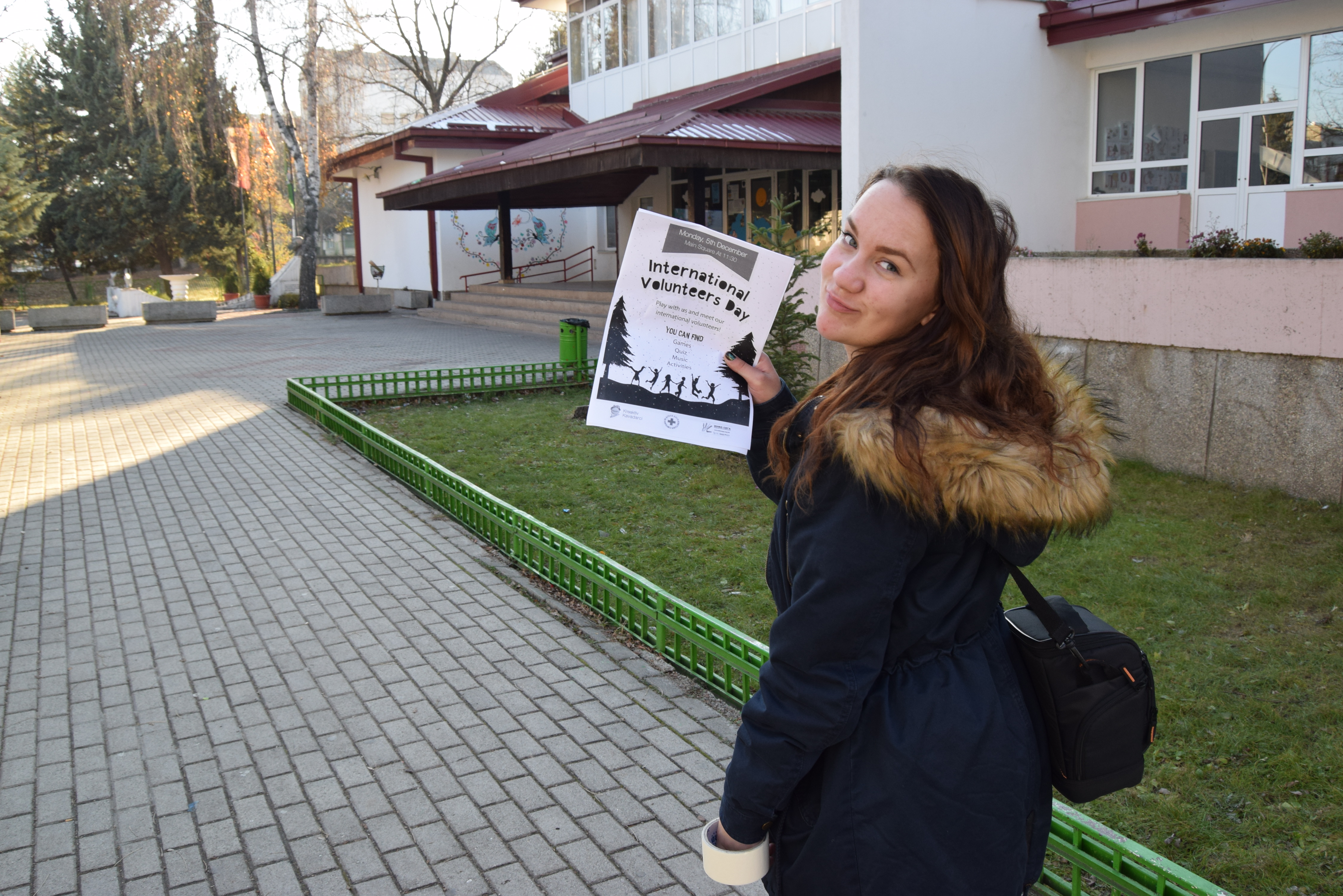 1/2 pildil olen ma plakateid koolidesse ja tänavale üles panemas, et reklaamida rahvusvahelist vabatahtlike päeva. Selle raames korraldasime peaväljakul ürituse kus korraldasime viktoriini, mänge ja rääkisime miks minna vabatahtlikuks ning miks me oleme vabatahtlikud.  (2.detsember)