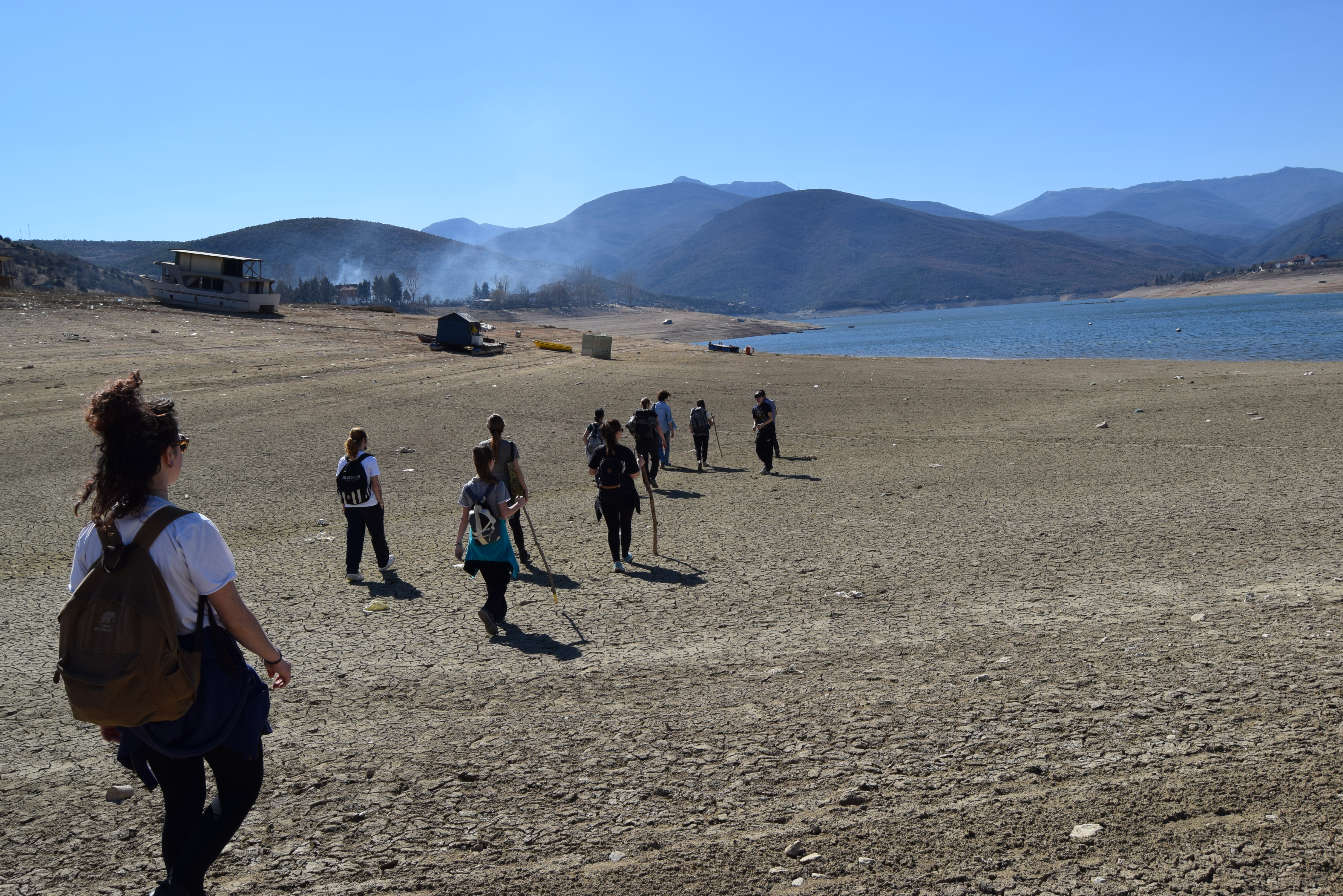 Laupäeval käisime noortekeskuse inimestega ka matkal; 10-kilomeetrise raja jooksul ronisime nii mägedest üles kui alla, kõndisime mööda järvepõhja ning põgusalt ka läbi männimetsa. Siinne maastik on praegu pigem kuivanud ja pruunikas, rohelust eriti paista ei ole. Ümberkaudsed mäed on täis viinamarjaistandusi, kuid needki paistavad praegu üsna kuivanud olevat. Eks näis, milline maastik siin kevade ja suve poole on.