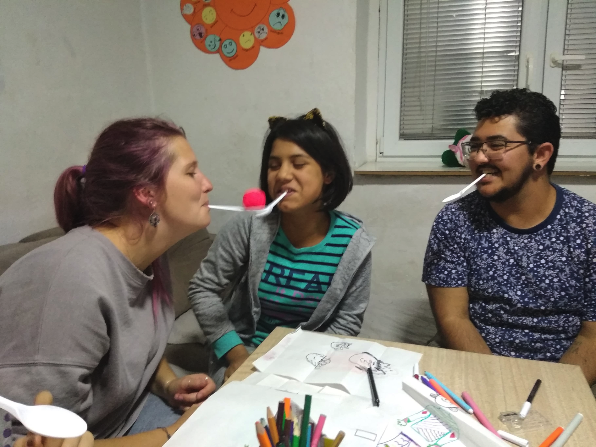 Järgmisel päeval algas meie töö noortekeskuses Kreaktiv. Töö seisnes peamiselt erinevate töötubade korraldamises kohalikele noortele. Osalesime näiteks geograafia ja kunsti töötoa, raamatuklubi, jalgpallimatši ja seksuaaltervisele pühendatud töötoa korraldamisel. Mind hämmastas, kui arukad olid kohalikud noored. Tõeliselt meeldiv oli nendega tegeleda, tutvuda nende mõttemaailmaga ning kuulata nende rõõme ja muresid.